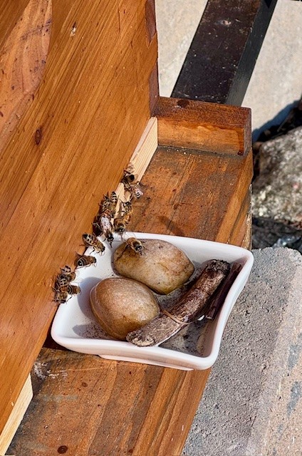On a warm winter day, feel free to set out some water for the bees — they’ll gladly take it.