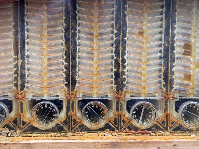 Everyone had the chance to open a hive and investigate what might have happened to the bees. The stories varied widely: some hives were simply empty — the bees had likely swarmed in the fall. In others, the bees were still in the comb, with honey nearby. These colonies may have been weakened by e.g. high mite loads and then possibly froze. Elsewhere, wax moths had taken over.
